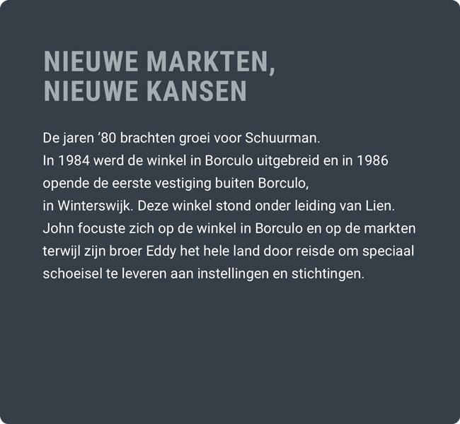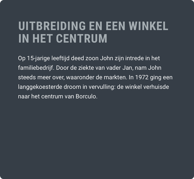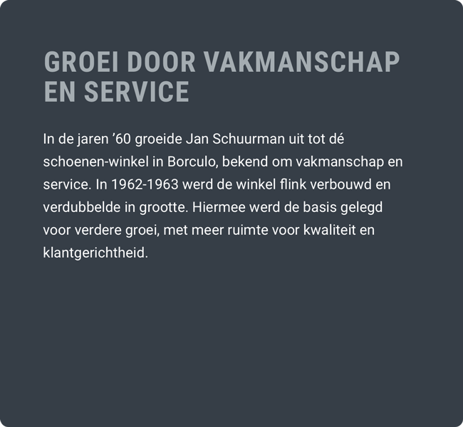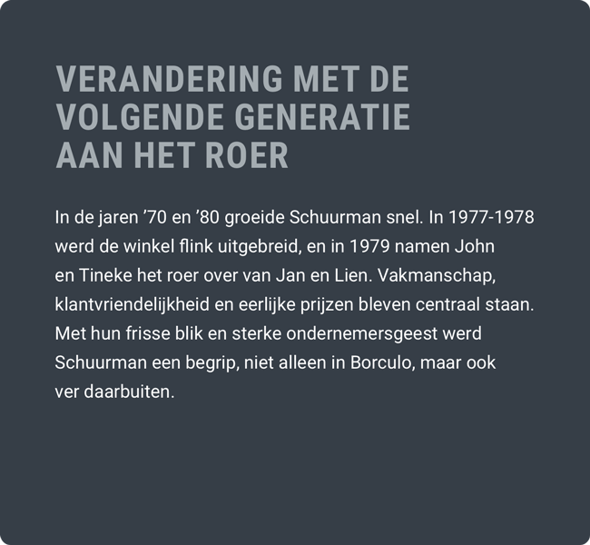 Op 2 juli 1955 opende Jan Schuurman de eerste winkel in Borculo.